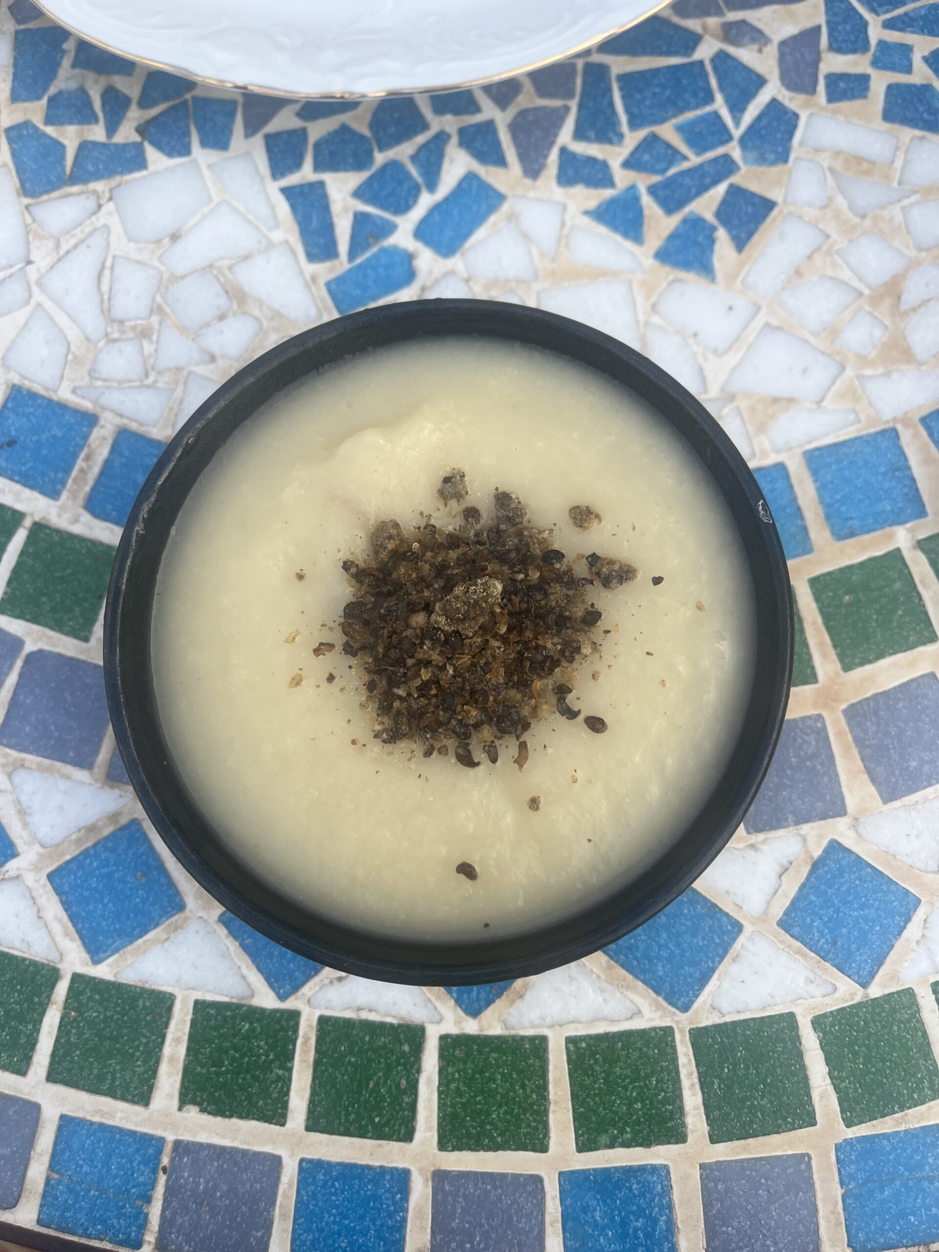 Puedes ponerle como topping semillas o crutones. En la foto son semillas de cáñamo tostadas y molidas, aportando un toque proteico y delicioso.